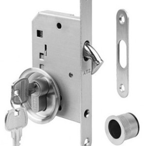 Mortise lock with hook for sliding interior doors.The lock is locked with a PZ locking cylinder. Locking cylinder separately. The cylinder door is loc..