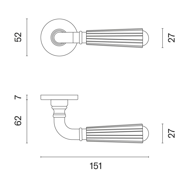 – rokturu pāris – pa kreisi un pa labi; kopā ar 7mm biezām rokturu rozetēm;