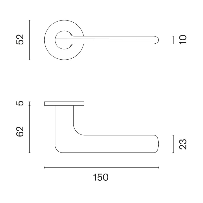 – rokturu pāris – pa kreisi un pa labi; kopā ar 5mm biezām rokturu rozetēm;