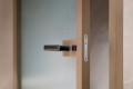 Прозрачное стекло сохраняет ощущение пространства, а минималистичная рама придает современный вид